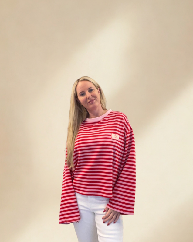 sweater strepen rood roos size tu