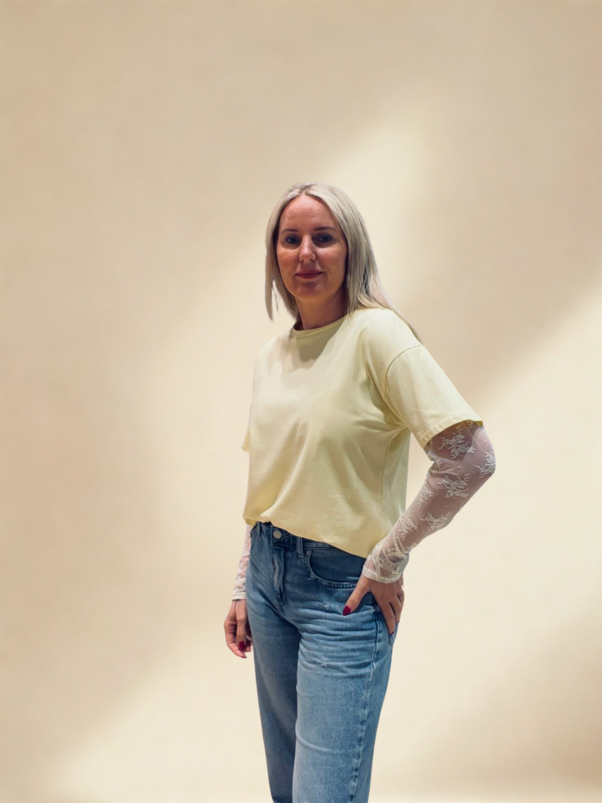 t-shirt met kanten mouwen geel size tu