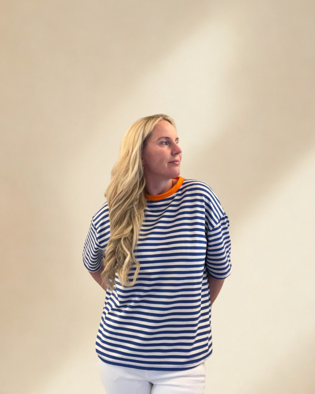 t-shirt strepen wit blauw size tu
