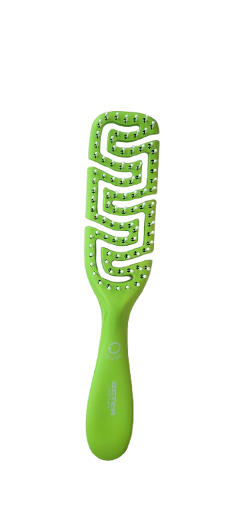 vent brush for curly /thick hair, nylon pins with protective tip. green recycled